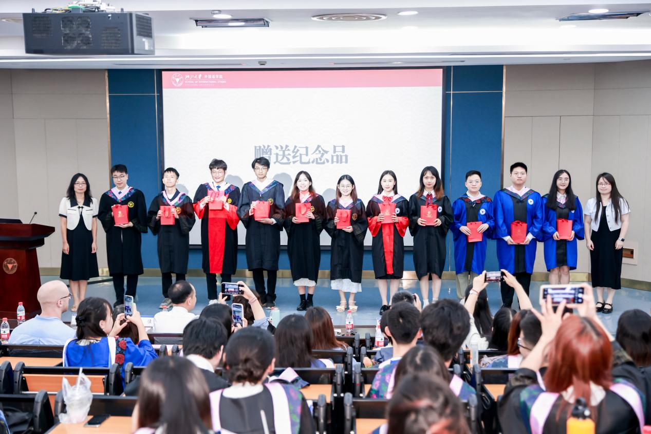 副院长赵佳、闵尚超向毕业生代表赠送纪念品
