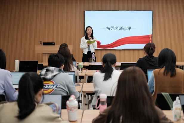 各小组展示结束后,练斐对三个专题故事进行了总结和点评。她对宣讲团成员的表现作出了高度肯定,向成员们提出要关注课件结构与内容、完善呈现形式等建设性意见,为后续提升宣讲效果指明了方向。之后,练斐以“换位·共情·生活”为题做分享,指导宣讲团同学们“用有温度的对话,点燃跨越山海的情感共鸣”。她以生动的实例展示了如何更好地向国际听众介绍中国文化,增强跨文化交流和理解。