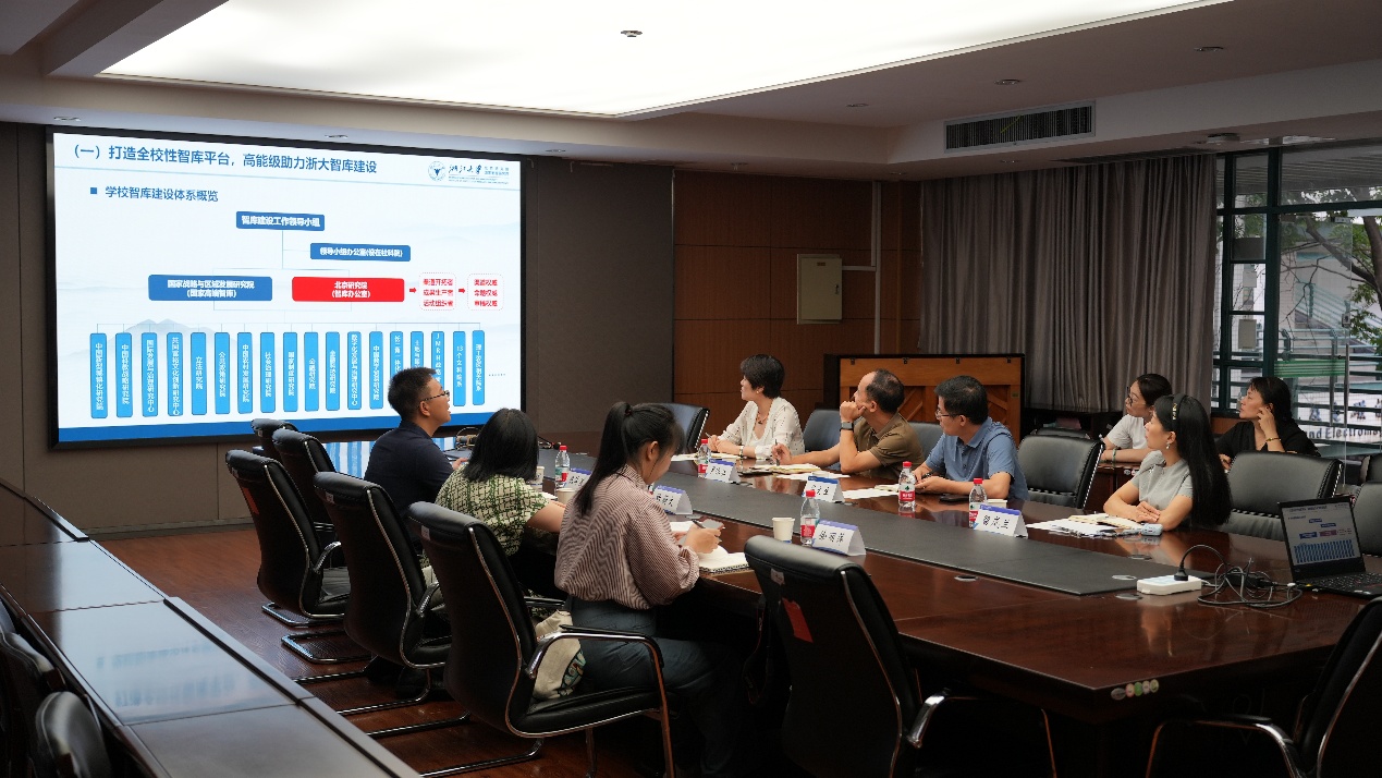 屈文生代表学院对张蔚文一行的到访表示热烈欢迎。陈泽星介绍了浙江大学北京研究院(国家制度研究院)的发展情况。张蔚文表示,双方在学术资源、地理位置等方面优势互补,合作基础深厚、发展前景广阔。