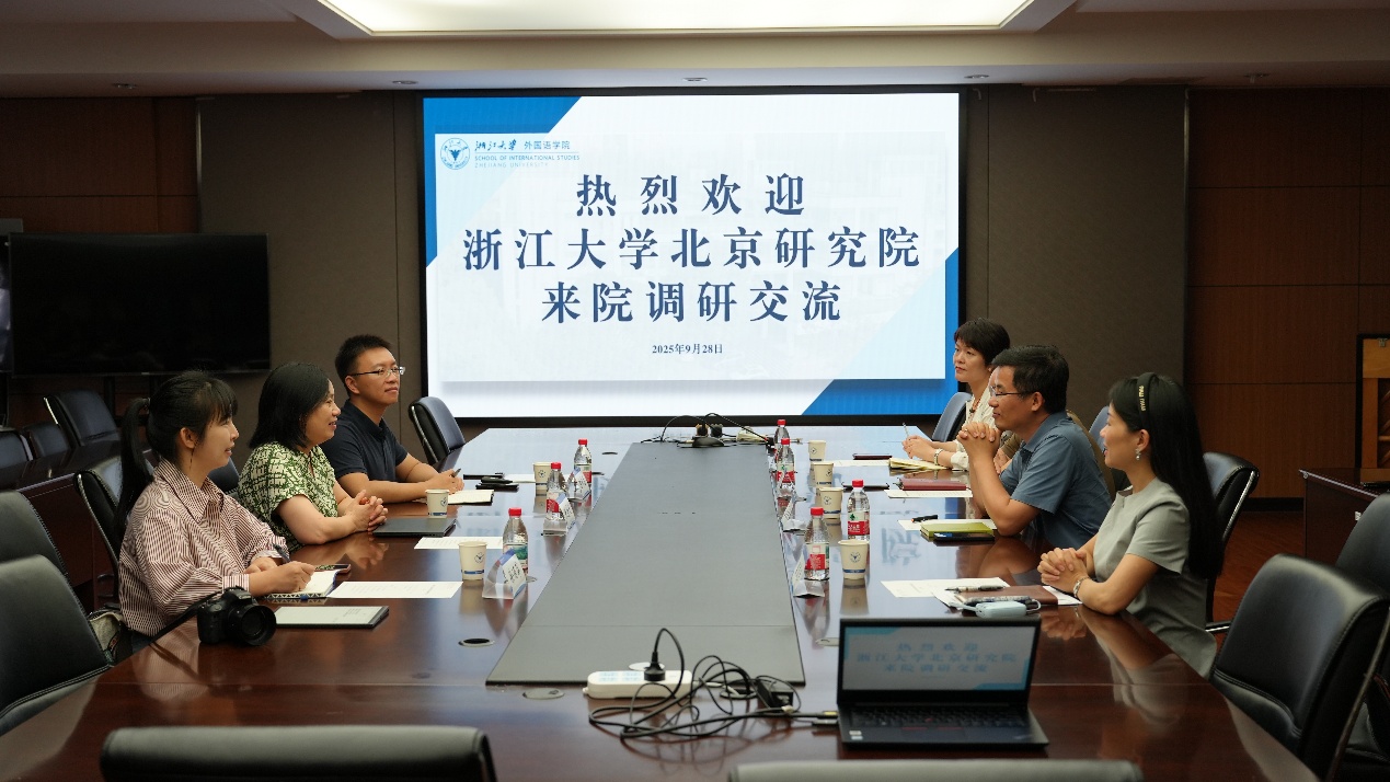 9月28日下午,浙江大学北京研究院院长张蔚文、副院长陈泽星一行来院,调研交流科研合作、人才培养、学科建设等方面工作。外国语学院院长屈文生、党委书记罗泳江、副书记留岚兰、副院长袁淼叙出席调研交流会。