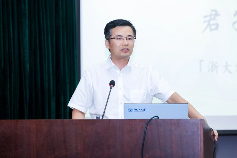 屈文生以“构建生生不息的‘浙大外语人’共同体”为主题向全体新生讲授开学第一课。他首先从校歌“大不自多,海纳江河”的精神内涵切入,阐释“求是启真”的学术理念与“谦逊包容”的治学态度,强调外语人应具备“道器合一、体用不二”的综合素养,既要夯实语言基础,也要肩负文化传播的使命。随后,他系统介绍了学院在“外语+”复合型人才培养方面的实践路径,重点列举“英语+法学”“德语+光电信息科学与工程”“法语+电子科学与技术”等双学位项目及国际组织精英人才培养计划,展现学院跨学科融合的育人特色。在人工智能的时代背景下,高水平复合型外语人才仍为国家战略所急需,因此,他鼓励新生超越工具性认知,建立学术身份认同,筑牢共同体意识,主动对接国家发展需求。最后,他寄语2025级新生要以天下为己任,以青春为序章,做文质彬彬、初心澄澈的追光者、笃行者,成为具有中国情怀、世界眼光与独立精神的浙大外语人。
