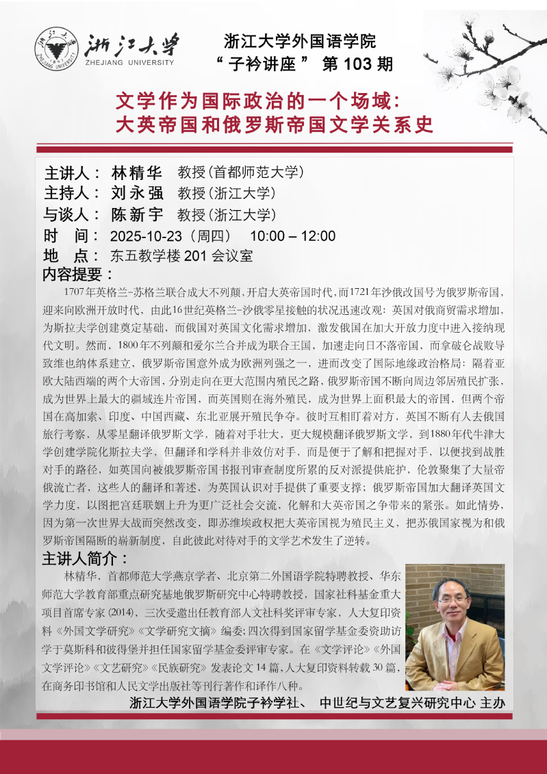 关于子衿学社系列讲座第103期的通知
