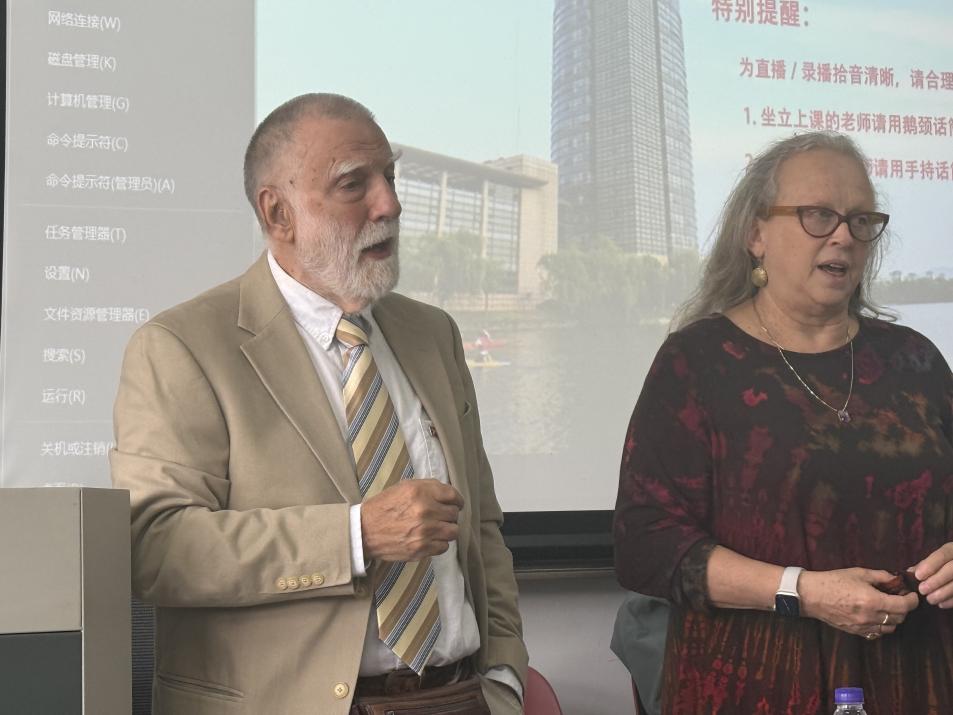 讨论结束后,John Rosenwald教授与Ann Arbor编辑带来了诗歌朗诵与歌曲表演,将现场的气氛推向高潮。两位学者选择的诗歌是诗人罗伯特・勃莱(Robert Bly)的《冬日蚂蚁》(The Winter Ant),婉转悠扬、饱含深情的朗诵让在场听众深刻感受到文学之美。他们指出,诗中的“carapace”(外壳)象征人们因创伤而隐藏真实自我的状态,想以这首诗鼓励学生表达自身的真实情感。朗诵过后,两位学者热情洋溢地演唱了美国经典歌曲,Arbor编辑进一步对学生寄语,激励学生以积极乐观、持续进步的态度对待学术与人生。