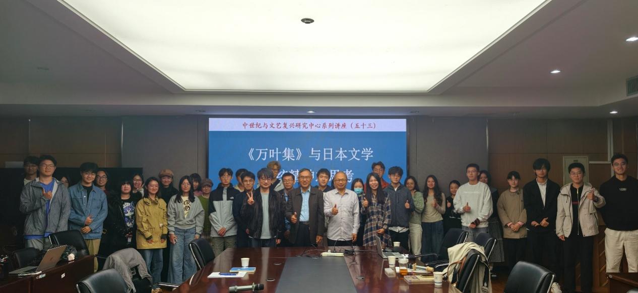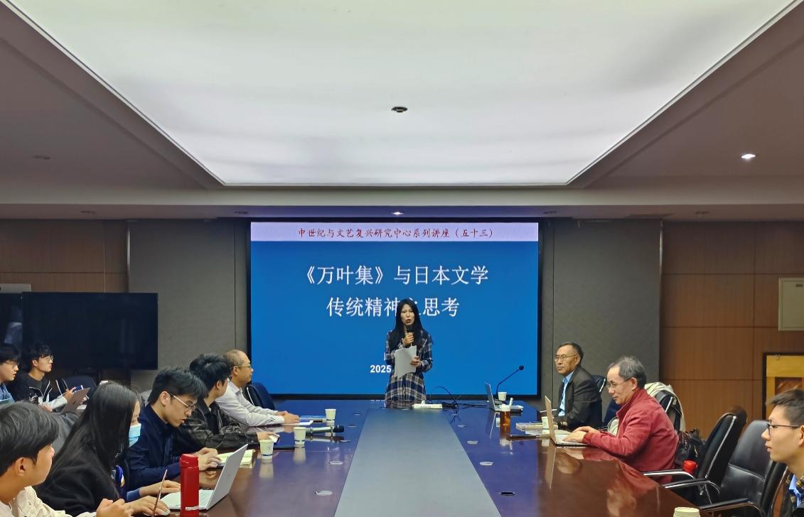 2025年10月22日下午,浙江大学外国语学院中世纪与文艺复兴研究中心第五十三讲系列讲座顺利举行。邱鸣教授以日本最早的和歌集《万叶集》为切入点,通过比较“万叶精神”与“物哀精神”,揭示了日本文学传统的精神特质。本次讲座由浙江大学中世纪与文艺复兴研究中心与日语语言文化研究所共同举办,浙江大学教育基金会钟子逸基金资助。讲座由日语语言文化研究所刘莹老师主持,首都师范大学比较文学系主任林精华教授、浙江大学求是特聘教授、中世纪与文艺复兴研究中心主任郝田虎、日语语言文化研究所胡文海老师出席。