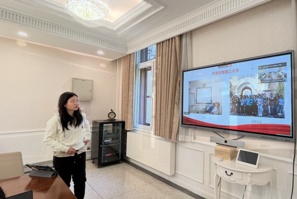 浙江大学外国语学院2023级翻译学博士生朱含汐则以浙江大学“求是飞鹰计划”为切入点,分享了其在南洋理工大学开展联合培养的学术经历。她还结合自身申请经历,详细解读了国家及学校针对海外学术交流的资助政策、申请流程与注意事项,为同学们提升国际学术视野、参与高水平国际学术合作提供了可借鉴的实用经验。