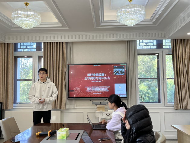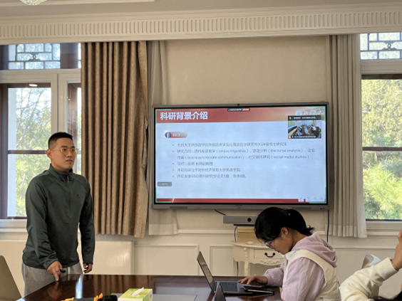 北京大学外国语学院2024级外国语言学及应用语言学博士研究生吴诚辉从“学术生涯规划与科研能力培养”出发,梳理了科研探索的重要节点,提出了在自我定位、论文选题、期刊选择、稿件修改等环节的实用建议,为两校学生党员提升学术素养、以科研能力赋能对外传播提供了有力指导。