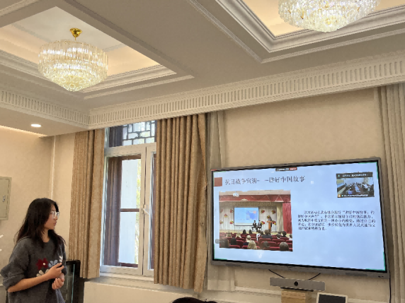 同系2022级本科生马嘉茵同志则以“阅兵游记”为线索,串联起俄罗斯圣彼得堡、白俄罗斯明斯克、俄罗斯莫斯科三座城市的文化特色,通过图文展示与现场口述相结合的方式,分享了自己在参与跨文化活动中运用俄语能力搭建沟通桥梁的故事,深刻体现了青年在文明对话中的成长与蜕变,为在场同学如何以语言为工具讲好中外交流故事提供了鲜活范例。