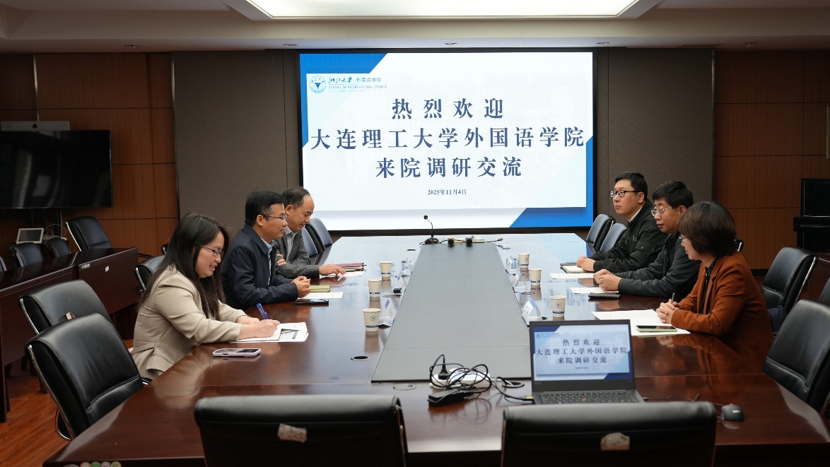11月4日,大连理工大学外国语学院院长陈宏俊,副院长孙成志、丁蔓一行来院调研交流。双方围绕一流学科建设、师资队伍建设、公共外语教学改革、国际组织人才培养等核心议题展开深入探讨。浙江大学外国语学院院长屈文生、党委书记罗泳江、副院长闵尚超出席调研交流会。
