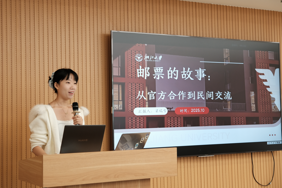 备课会核心环节为党课展示与经验分享。宣讲团成员梁瑞雪为大家带来了一节生动的外交组党课示范,她围绕邮票这一载体,讲述了通过其连接的地球村友谊与跨国寻根的故事,邮票以及随着时代发展的各类媒介始终扮演着不可或缺的角色。或作为通信工具、文化符号,抑或作为情感寄托,它见证了官方外交的伟大成就,也记录了民间交流的温暖瞬间。