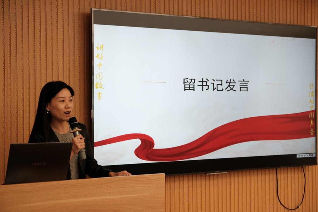 党课展示结束后,浙江大学外国语学院党委副书记留岚兰对三位同学的宣讲进行了总结点评。她首先高度肯定了全体成员的表现,随后为宣讲团后续发展给出三点建设性指引:一是 “找准小切口,讲述大情怀”,用具象化的叙事映照中国精神;二是 “用好真心话,传递真感情”,以真诚引发共鸣;三是 “用专业能力,架理解桥梁”,发挥外语优势打破沟通壁垒。同时,她鼓励同学们坚守初心、聚焦时代主题,反复雕琢细节、探索宣讲新路径,全力展现立体、全面、真实的中国形象。