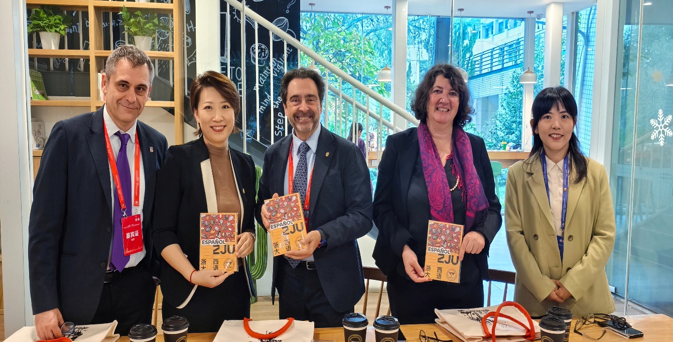 11月8日,西班牙巴塞罗那大学校长琼·瓜迪亚·奥姆斯教授、战略项目副总经理霍尔迪·博什·德博尔哈先生及巴塞罗那孔子学院外方院长盖尔·帕坦·拉卢瓦女士一行访问浙江大学外国语学院。西班牙语语言文化研究所所长卢云、教师代表杨帆与代表团举行工作会谈,双方就人才培养、学科建设与深化合作进行了广泛深入的交流。