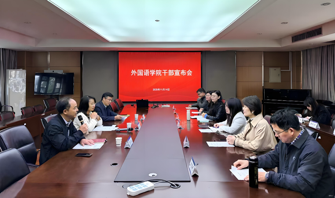 11月14日上午,浙江大学外国语学院召开干部宣布会。党委组织部副部长单珏慧宣读任命文件并讲话,学院党委书记兼副院长罗泳江主持会议。