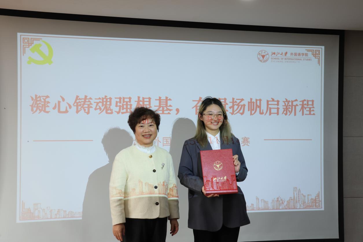为深入学习贯彻党的二十届四中全会精神,进一步加强基层党支部组织建设,提升学生党支部的凝聚力、战斗力和创造力,浙江大学外国语学院于2025年11月14日在紫金港校区东六227顺利举办“凝心铸魂强根基,奋楫扬帆启新程”微党课大赛。外国语学院兼职组织员、德育导师闻人行,外国语学院专职组织员张雯婷,心理与行为科学系团委书记罗悦,外国语学院团委书记杨丹旎出席并担任评委。