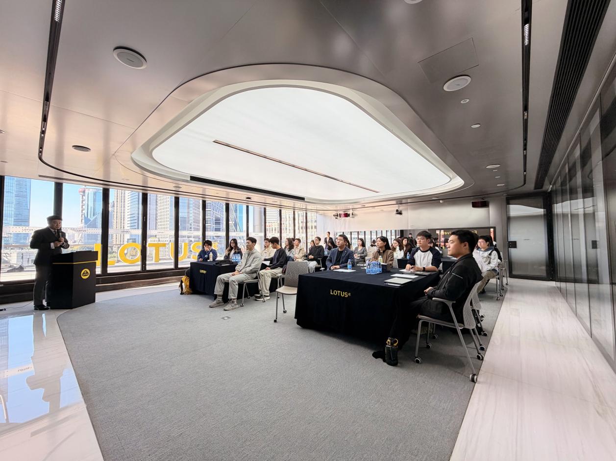 在随后的交流分享环节中,莲花科技党委书记兼组织发展部高级总监董大伟、营销中国及中东亚太区销售培训负责人颜峰、全球产品规划专家陈轶恒分别向同学们介绍了企业的运营模式、跨国协作体系以及面向未来的战略布局。浙江大学2024届毕业生、莲花科技智能驾驶算法开发工程师赵磊也结合自身经历,分享了从学生走向职场的成长体会,鼓励同学们主动探索、加强协作,不断提升综合能力,将专业所学应用于更广阔的发展空间。分享之后,同学们围绕岗位适配、品牌国际化等进行了提问。企业代表介绍了在品牌传播、国际业务沟通、市场运营等岗位上对语言应用能力和跨文化沟通能力的需求,强调综合素质与学习能力在企业培养体系中的重要性。
