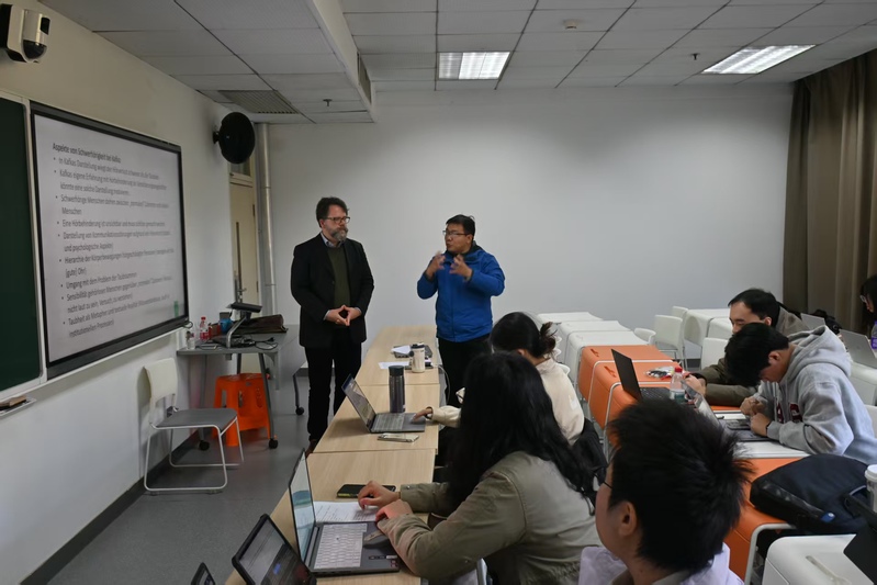 2025年11月20日下午,德国慕尼黑大学的Christoph Schmitt-Maaß教授应浙江大学外国语学院德国学研究所和子衿学社邀请,在紫金港校区东1A-308教室举办了题为《手贴耳边:卡夫卡笔下的听觉障碍》的讲座。此次讲座为“中德文学交流史话”系列活动的第36期暨“子衿讲座”第108期。讲座由浙江大学刘永强教授主持,来自德国学研究所和文学院的30余位师生参加了此次讲座。