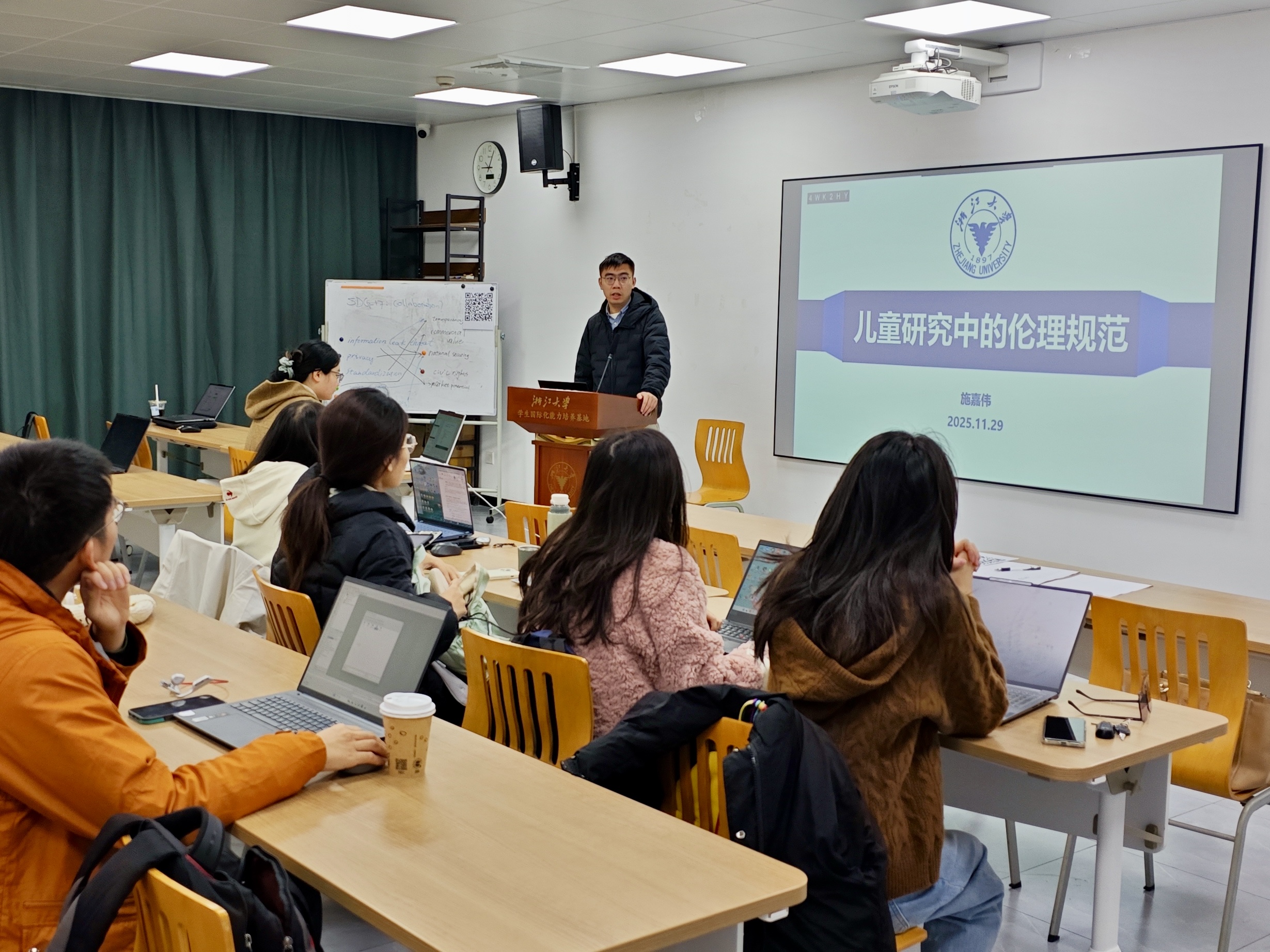 嘉年华于上午9:00正式拉开帷幕。首场报告由学院百人计划研究员施嘉伟博士主讲,题目为“儿童研究中的伦理规范”。报告中,施嘉伟博士结合自身开展儿童研究的经验指出,凡涉及儿童的研究须事先取得儿童家长的充分知情同意,研究者需向家长清晰、全面介绍实验内容及可能存在的风险,并在研究过程中避免对任何特定受试群体表现出偏好或歧视,以切实维护儿童参与者的尊严与合法权益。