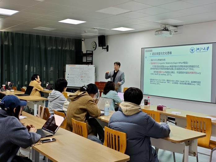 下午14:00,浙江大学文学院副院长史文磊教授带来了题为“语言类型与文化的跨学科探索”的主题讲座。史文磊教授以运动事件词化类型为核心案例,深入探讨Talmy的经典类型学框架及其最新发展,揭示出不同语言如何通过其独特的词化模式,对“运动”这一基本人类经验进行编码打包。讲座进一步探讨了语言类型与文化认知之间的深层联系,指出语言类型如何作为文化认知的棱镜,在潜移默化中影响思维方式与世界图景,引发了在场师生的积极互动与深入思考。
