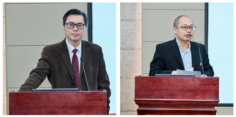 (主旨报告 左:章永乐研究员 右:郝田虎教授)