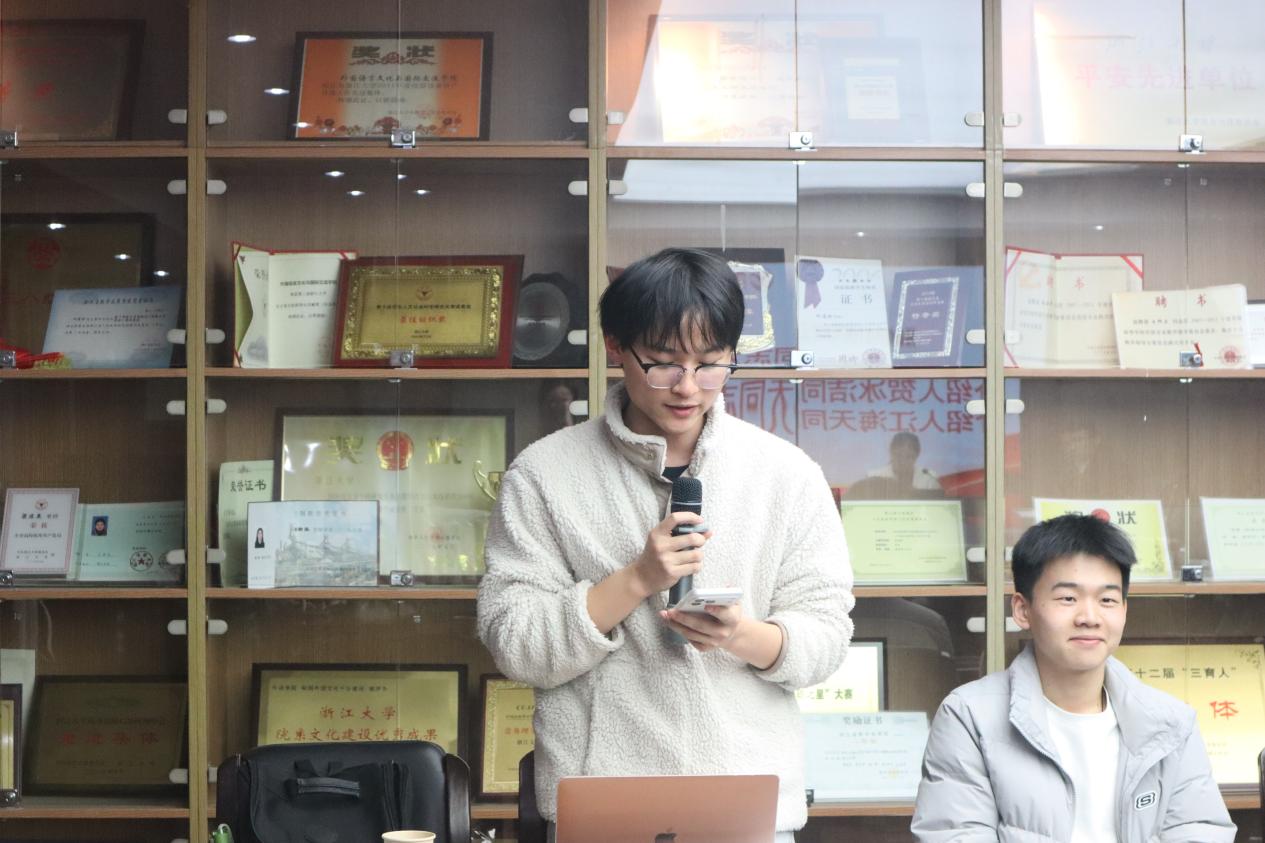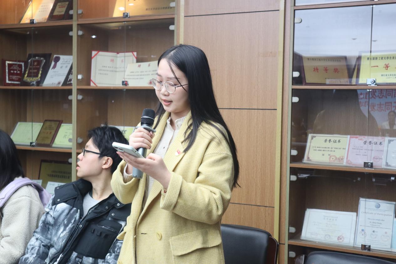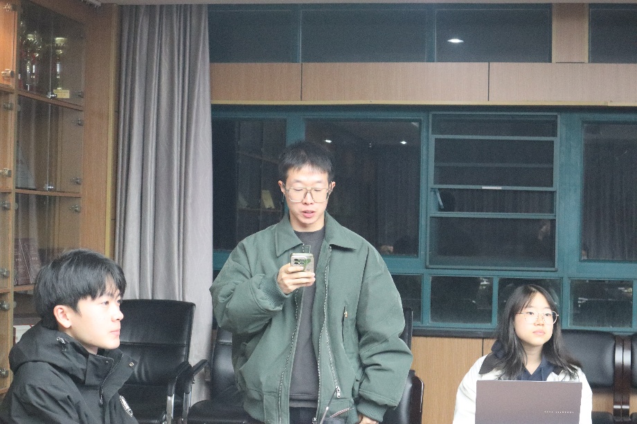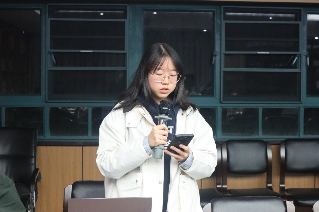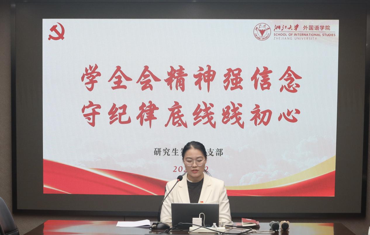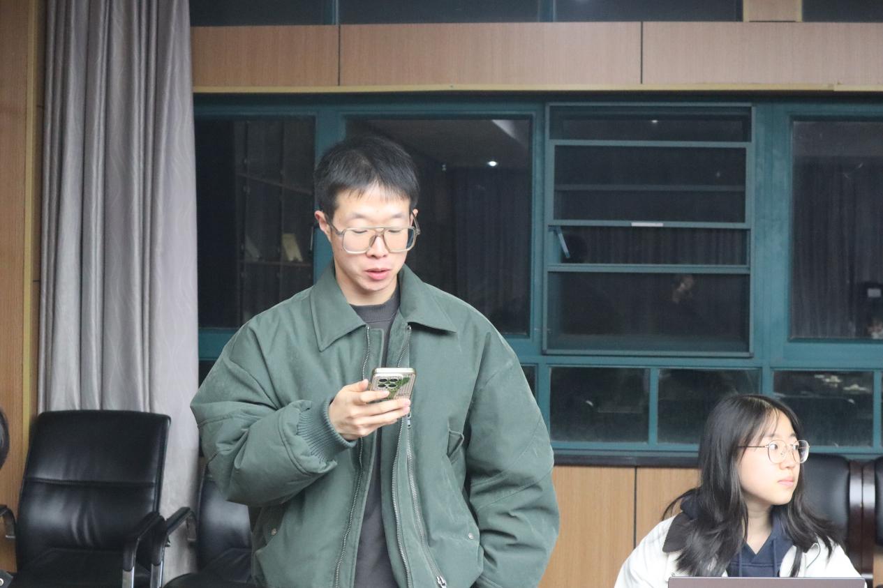 首先,屈文生院长作指导讲话。他勉励学生党员深刻领会全会精神,实现政治学习与业务学习的有机融合。他指出,党的二十届四中全会精神不仅是重要的学习任务,更能为各位同学的学习科研提供方向指引。同学们要积极思考如何将国家宏观战略,如“全面依法治国”、“十五五”规划等,与自己的微观学术发展相结合。支部书记郑玥分享了个人对于党的二十届四中全会精神的学习心得。她结合外语专业特点,谈到中国式现代化的时代意义,强调“以人民为中心”的发展思想与外语人讲好中国故事的使命担当。支部党员胡桥博、陈锐等同志随后踊跃发言,分别从科技创新、制度自信、学术实践等角度交流了学习体会。