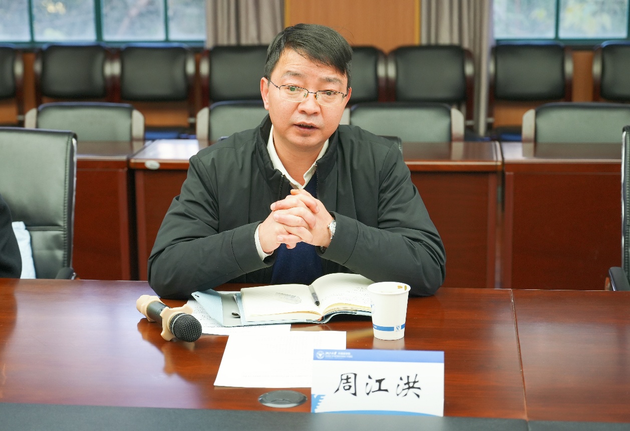 周江洪在调研中肯定了学院在“十四五”时期的建设成效,他指出,“十五五”时期是学校加快迈向世界一流大学前列的战略关键时期,在新的历史起点,他对外国语学院提出了三点期望。一要守正创新,主动应对人工智能带来的挑战,抢抓机遇、前瞻布局,积极探索专业人才培养新范式,加速推进重点特色学科的建设发展。二要突出优势,在统筹好高质量发展与安全稳定关系的同时,清晰绘制学科画像、系统梳理发展实绩,加强与学校部处的沟通交流,为一流学科建设取得突破筑牢基础。三要内外联动,以开放姿态汇聚关键资源,主动对接校内院系与研究机构,打造跨学科学术共同体,同时借助国际力量,为学院发展提供实质支撑。周江洪强调,学院领导班子要主动担当作为,变“提问题”为“提方案”,以更高的站位、更开放的思维和更务实的工作,充分激发内生动力,在学科建设与资源整合上闯出新路,实现外国语学院更高质量发展。