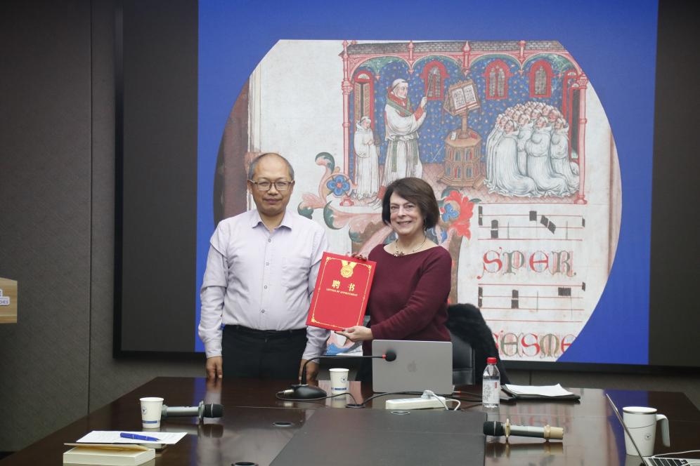 郝田虎教授向巴特菲尔德教授颁发中世纪与文艺复兴研究中心国际顾问聘书