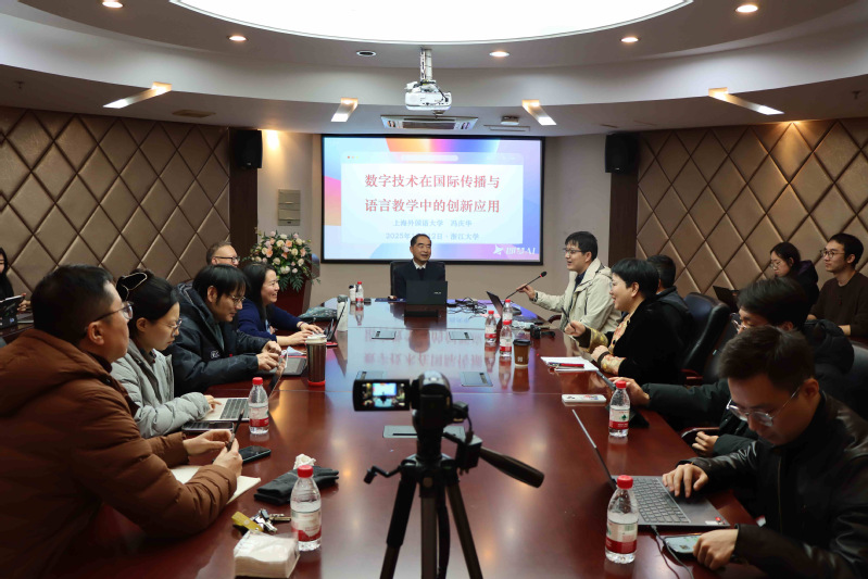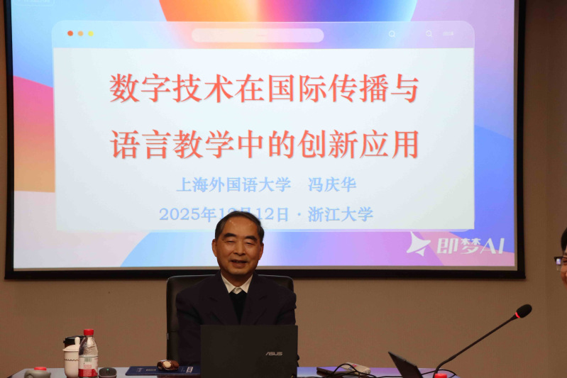 2025年12月12日下午,上海外国语大学教授、博士生导师冯庆华应邀来到浙江大学中华译学馆,为翻译专业师生作了一场题为“人工智能与数字技术赋能外语教育教学研究”的学术讲座。讲座由冯全功老师主持,吸引了众多师生参加。