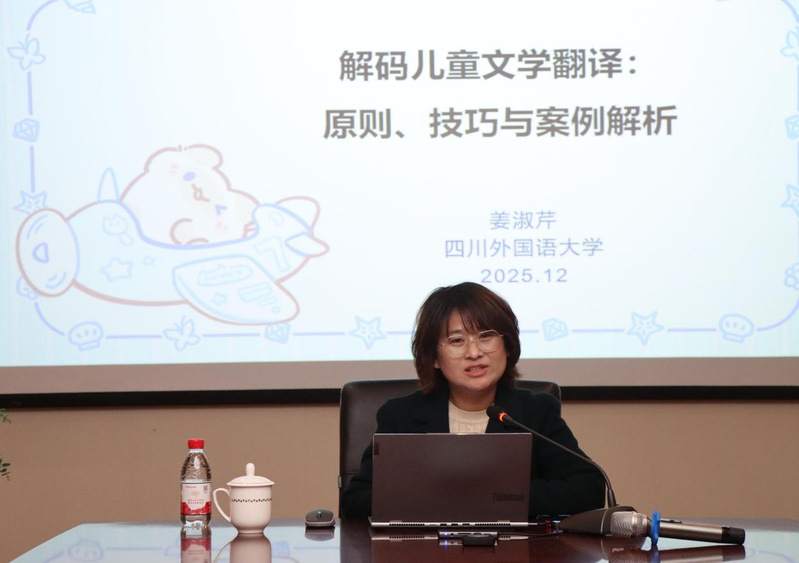 2025年12月17日下午,来自四川外国语大学外国语文研究中心的姜淑芹教授应邀为浙江大学外国语学院翻译学专业师生带来了题为“解码儿童文学翻译:原则、技巧与案例解析”的学术讲座。本场讲座由郭国良教授主持,吸引了众多师生到场聆听。