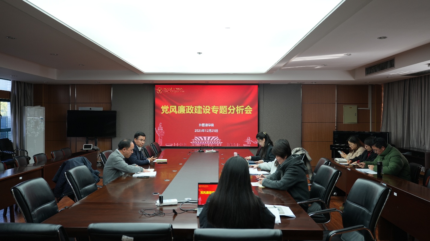12月25日,外国语学院召开2025年领导班子党风廉政建设专题分析会暨“一岗双责”落实情况汇报会,总结全面从严治党工作成效,分析研判党风廉政建设形势,研究部署下一阶段重点任务。学院党委书记罗泳江出席会议并作总结讲话,党委副书记、纪委书记留岚兰主持会议。