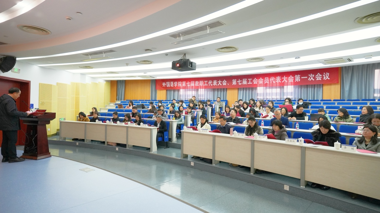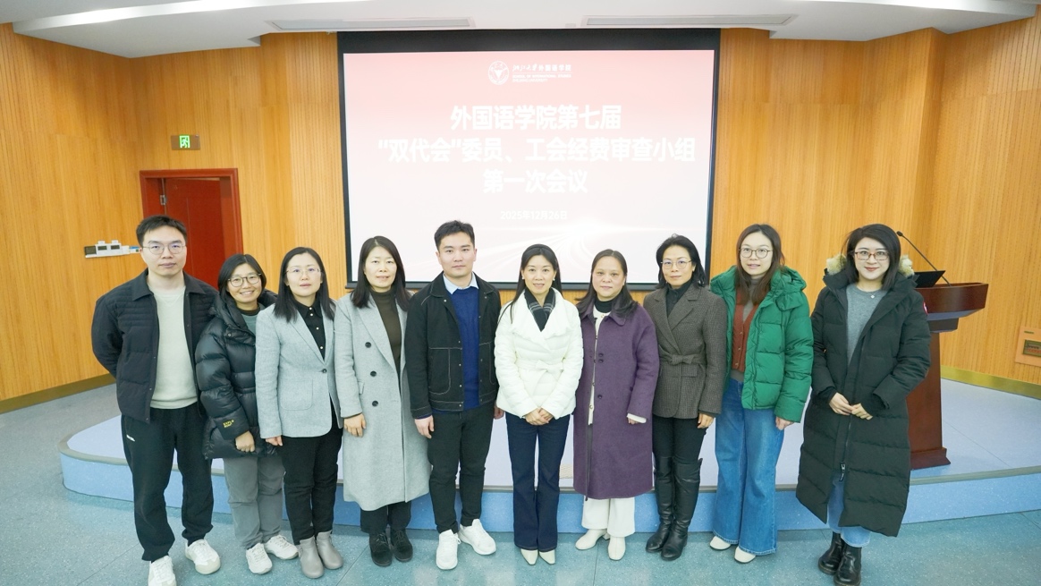 2025年12月26日下午,浙江大学外国语学院第七届教职工代表大会、工会会员代表大会第一次会议在紫金港校区召开。校工会副主席李民、外国语学院全体领导班子及学院三个代表团56名正式代表、5名列席代表参加本次大会。会议由浙江大学外国语学院党委书记罗泳江、党委副书记留岚兰分别主持。