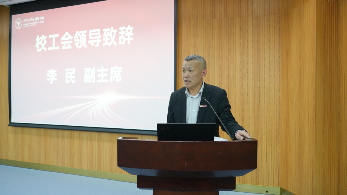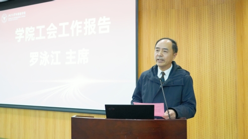 学院第六届工会主席罗泳江作《凝心聚力、共谱新篇——以高质量工会工作服务外国语学院“双一流”建设与卓越育人工程》工会工作报告。他表示,四年来,学院工会坚持以“党建带工建,工建促党建”为核心引领,凝心聚力、务实笃行,积极推动工会工作与学院中心任务同频共振、同向发力,在强化思想政治引领、完善民主管理机制、涵养卓越育人生态、推进教师教学创新、优化服务保障体系等方面取得显著成效。他希望新一届工会委员会在现有工作基础上持续强化价值引领、深化治理创新、优化服务体系、打造文化品牌、推进数字转型,为新时期学院高质量发展汇聚磅礴动能。