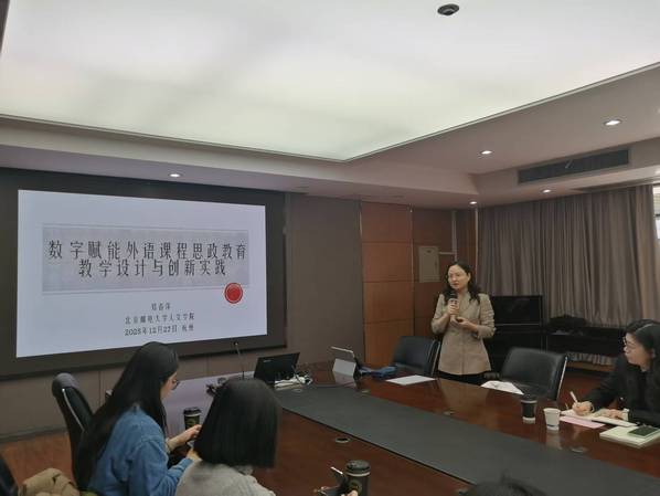 为深入推进外语教育教学改革,提升外语课程思政建设水平,助力教师数字素养与教学创新能力发展,12月27日我院特邀北京邮电大学郑春萍教授来院作题为“数字赋能外语课程思政教育的教学设计与创新实践”的专题报告。本次讲座由外国语学院副院长滕琳教授主持。