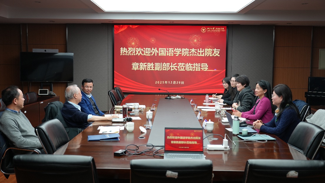 12月29日,教育部原副部长、世界自然保护联盟原总裁兼理事会主席、学院校友章新胜莅临外国语学院,就学院学科建设、人才培养及国际交流合作等工作开展座谈交流。学院党委书记罗泳江主持座谈会。