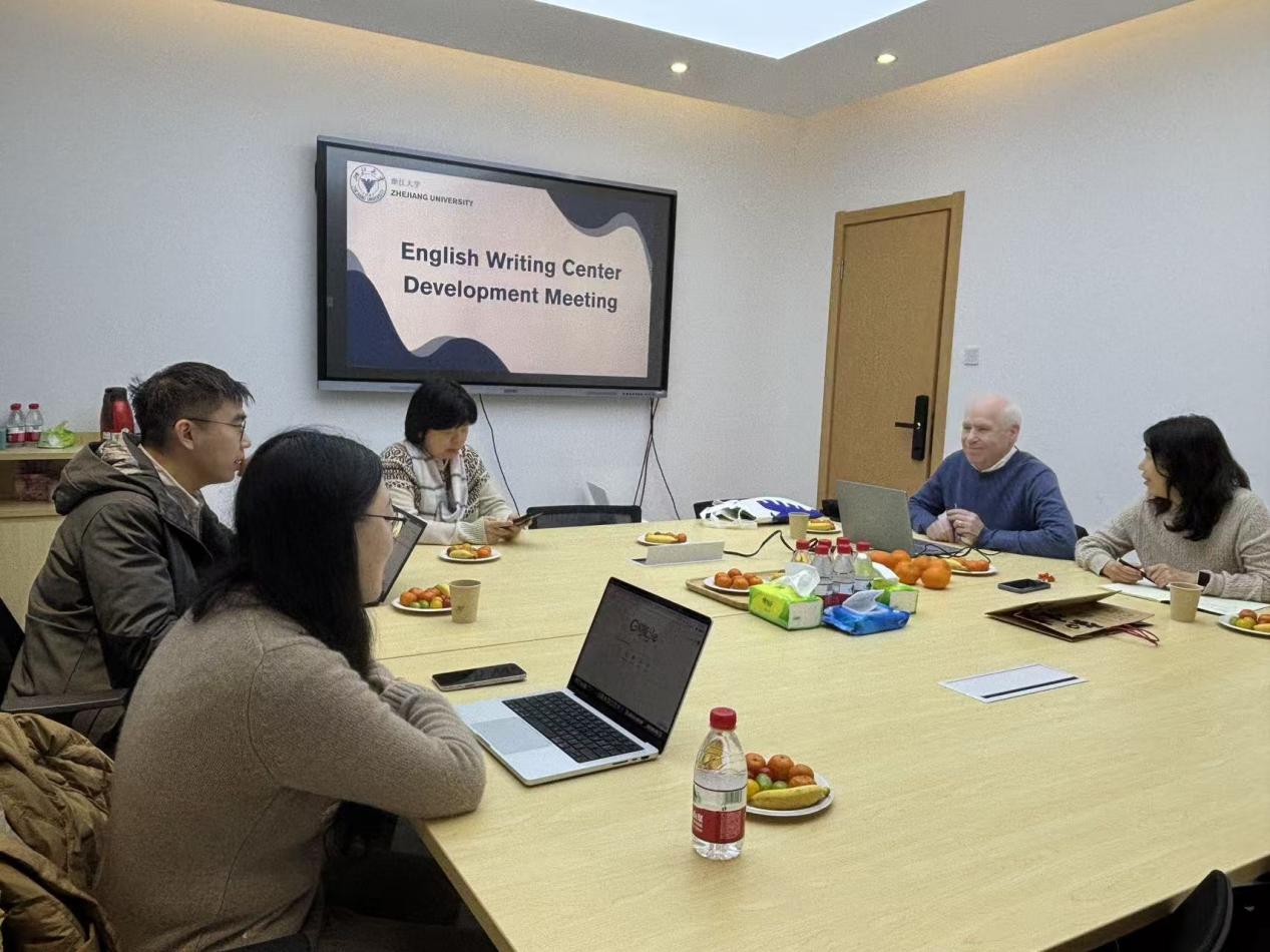 12月31日上午,Hughes教授受邀参加浙江大学英文写作中心学术写作项目建设发展会议,并就跨学科学术写作项目建设作专题报告。英文系主任方凡、英文写作中心执行主任王敏、青年教师施嘉伟、李莎以及写作中心工作人员参加会议。会议于紫金港校区东1A教学楼121会议室召开,由英文写作中心执行主任王敏教授主持。
