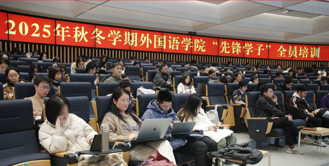 2025年12月26日下午,为深入学习领会习近平外交思想,引导学生党员拓宽国际视野、强化人类命运共同体意识,浙江大学外国语学院2025年秋冬学期第二次“先锋学子”全员培训在蒙民伟楼140会议室举行。浙江大学外国语学院副教授、浙江省发展与安全研究智库联盟秘书长李佳应邀作题为“与世界各国共同发展”的专题报告。报告由外国语学院团委副书记林鹏主持。