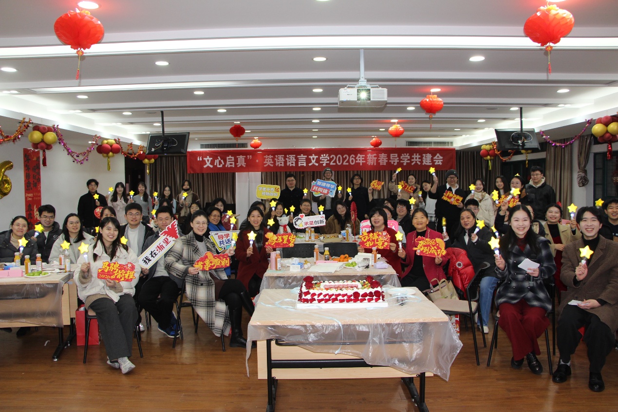1月4日晚上,“文心启真”系列活动之“英韵流转·语心共鸣”——英语语言文学2026年新春导学共建会,在浙江大学紫金港校区东六教学楼227报告厅圆满举行。本次活动由外国语学院英语语言文学二级学科点,第一教工党支部,研究生第一、二党支部及英文系联合主办。学院领导、英语语言文学专业师生与行政教师代表齐聚一堂,围绕导学关系与学术成长展开深入交流,在温馨愉悦的互动中共话师生情谊,展望新年愿景。现场暖意融融,气氛热烈。