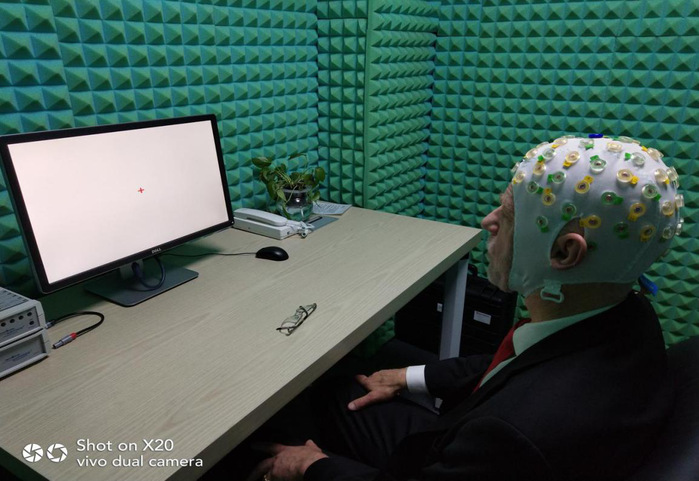Apart from the eye movement lab, Prof. Turner was also interested in the event-related potential (ERP) lab. Although he was not connected to electrodes and applied with EEG cream because it needed much longer time for the preparation of EEG experiment and he had another lecture later, he still went on wearing the EEG cap and completing test tasks.